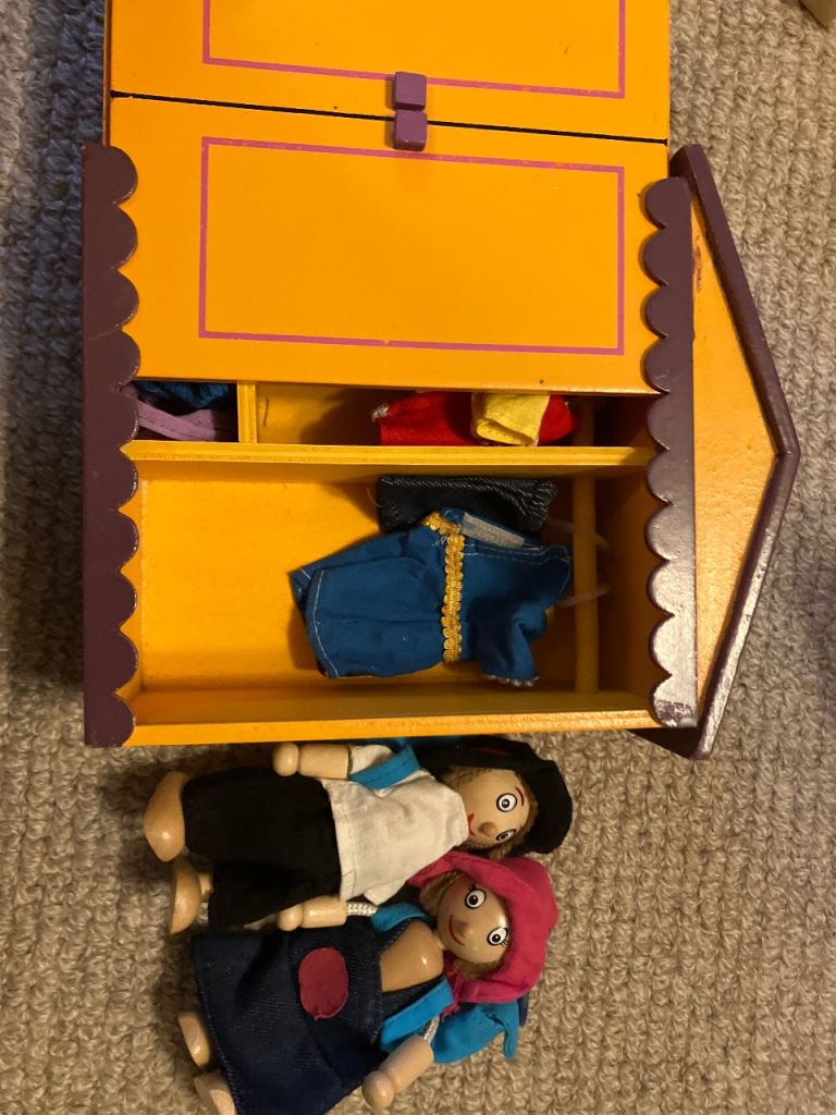 Dolls with wardrobe and clothes and sliding door