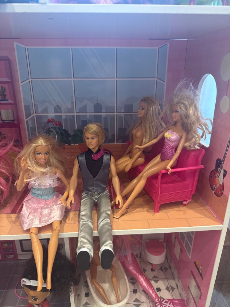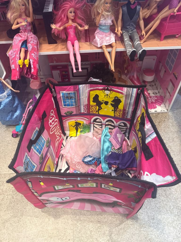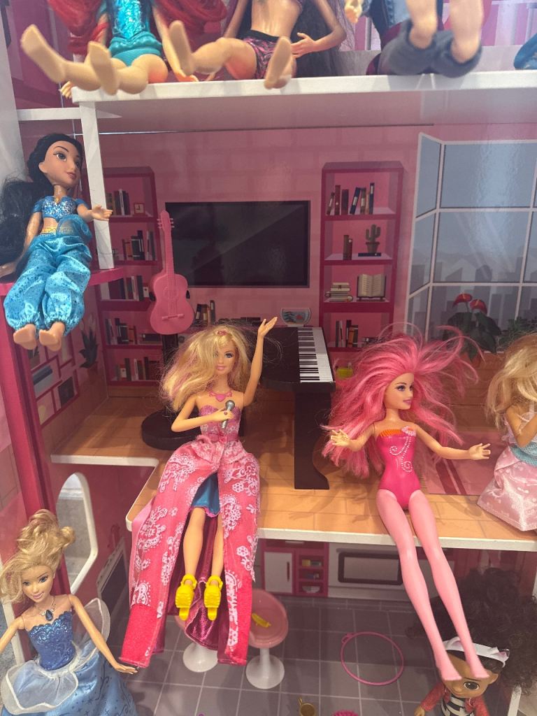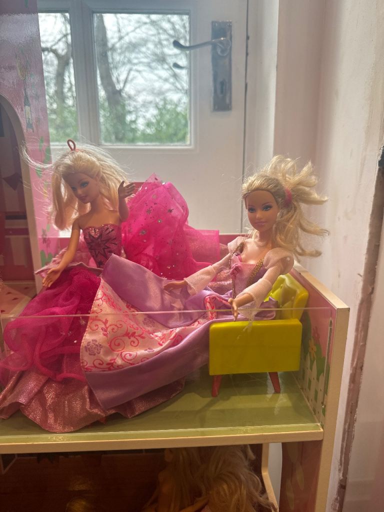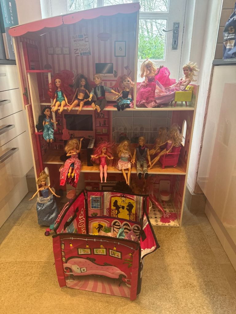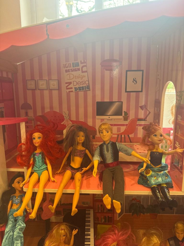 Large barbie bundle for sale, this includes large wooden house, total of 16 barbie, ken and other dolls, furniture, clothes and accessories and barbie bag. Everything what barbie fun needs 😊 wooden house is slightly damaged on the top which is shown on the picture but it not affect use. Please note you will need large vehicle to load this otherwise it will need to be dismantled. Collection from SO166RF Southampton