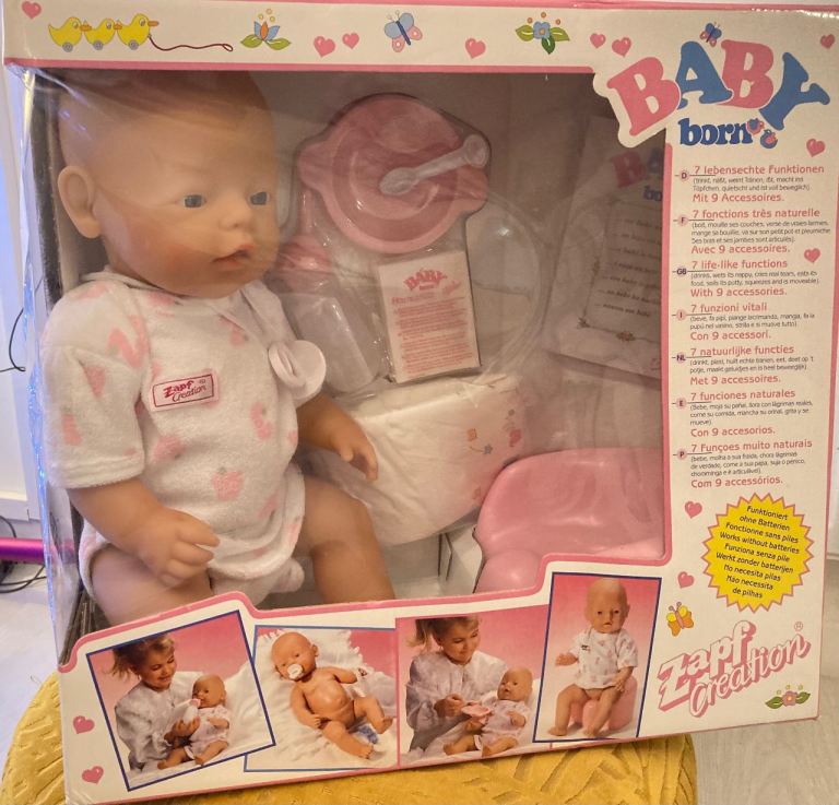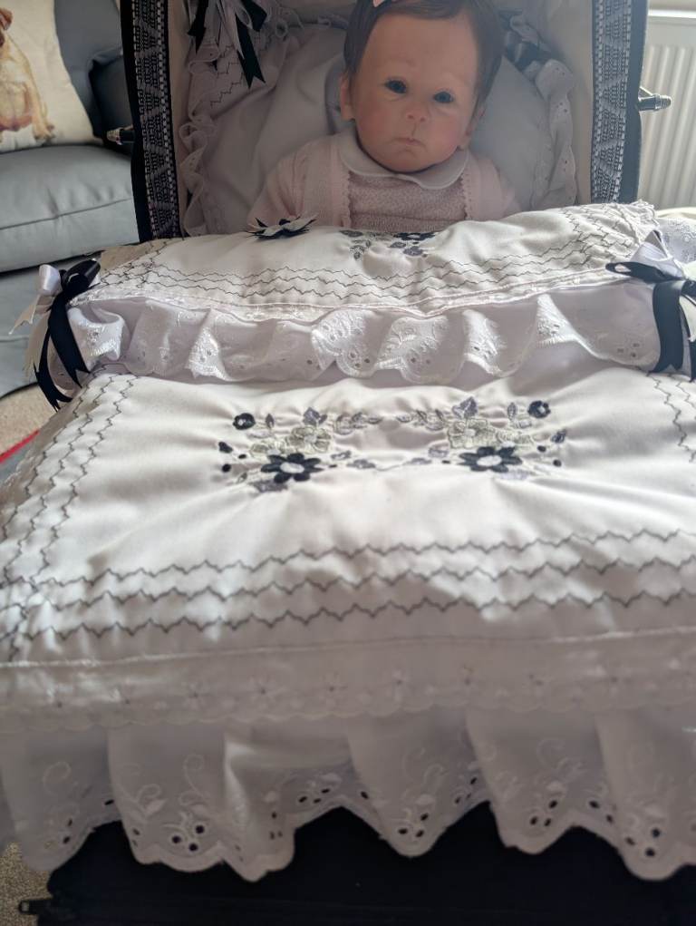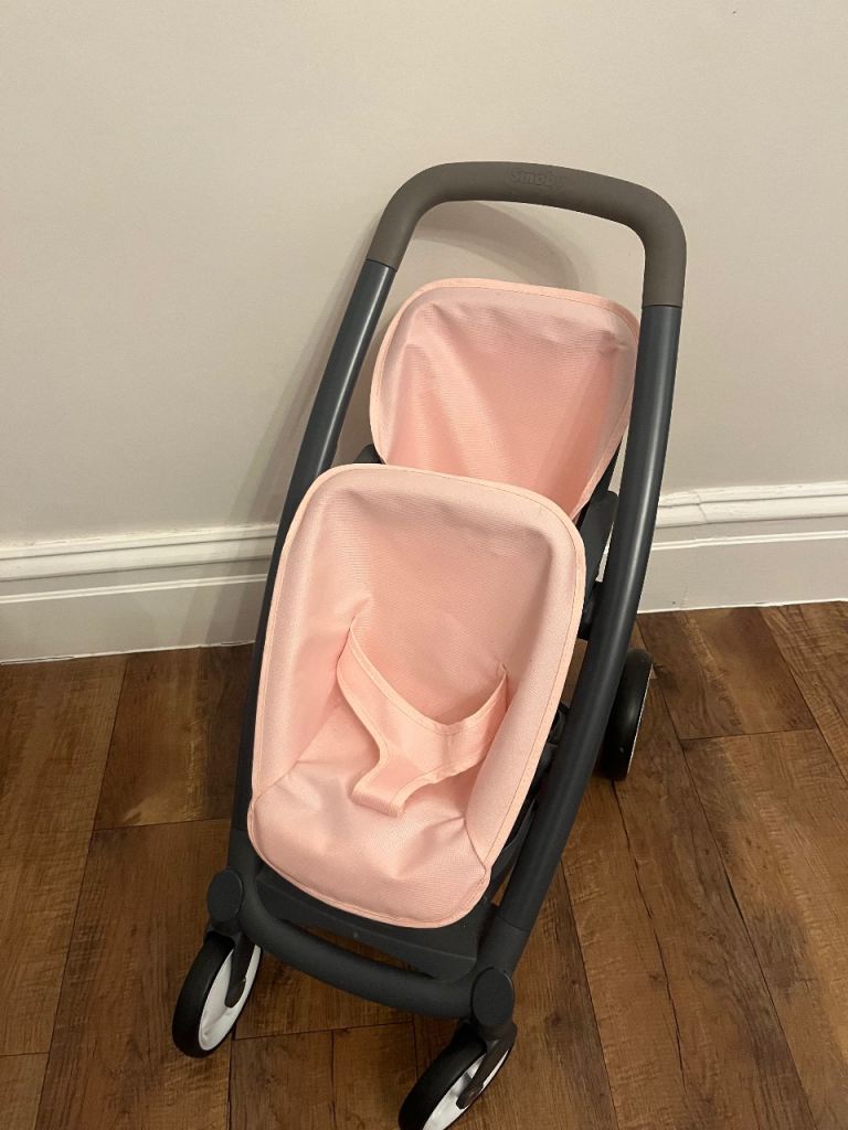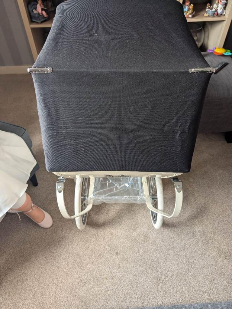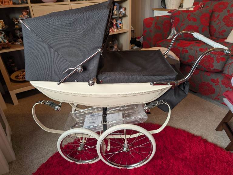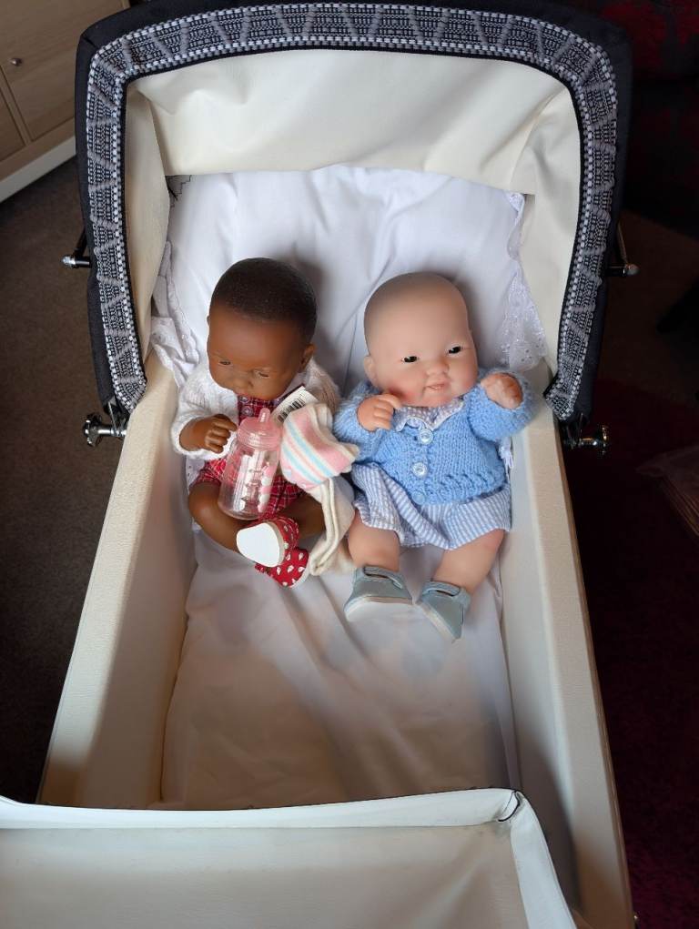 I have had this pram from new and has never been played with just used for display. Comes complete with 2 Berenguer baby dolls and all beddings. Also brand new tray and nanny bag. It is on leather shackles so must be for collection only It has no scratches or dents. Will consider very near offers