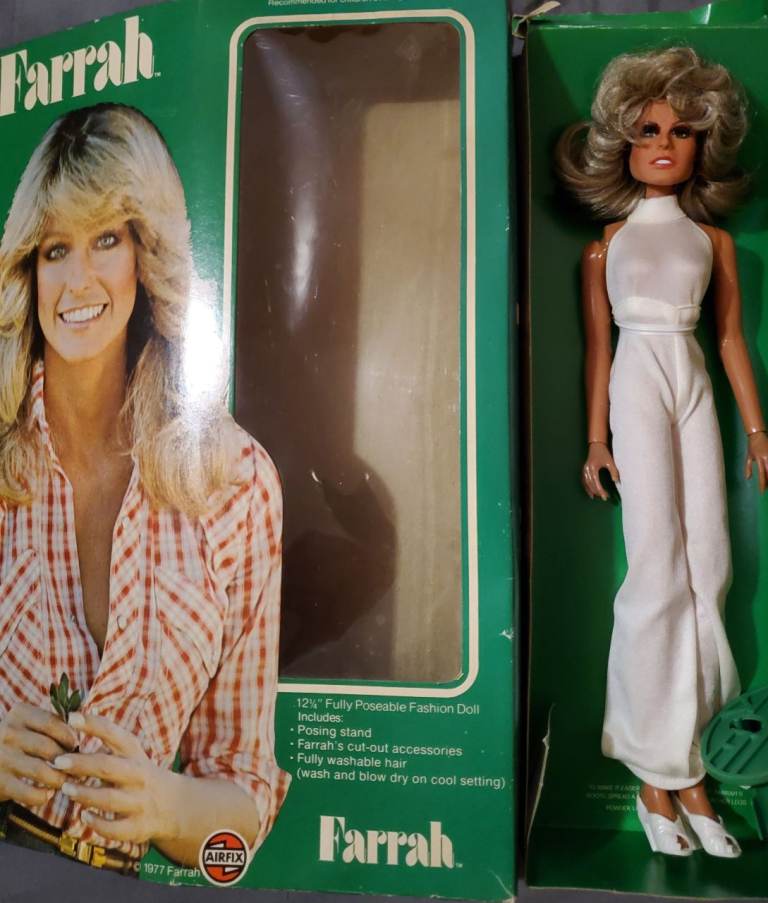 For sale is a beautiful vintage mego farrah fawcett styling head in lovely condition with the most fabulous hair and a boxed mego farrah fawcett doll in stunning condition her right arm is slightly coming away from shoulder due to mego melt but she has never been opened 2 beautiful items collection only please I'm in New cross gate Lewisham london my postcode is se145xh