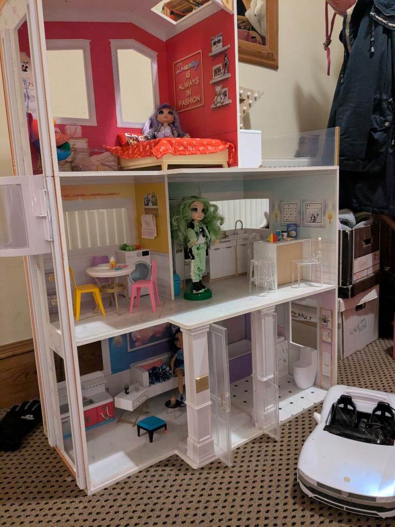 Brand new wooden dolls house also have brand new wooden dolls 2 seperste boxes unopened daughter has changed her mind bought for xmas paid 95 altogether will accept 60