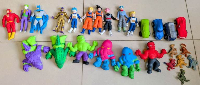 58 Goo Jit Zu and stretchy toys, stretch and strike thrash mobile dragonball batman flash joker goku