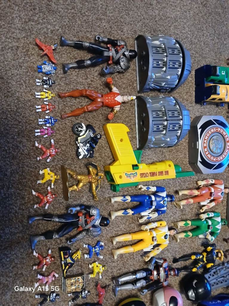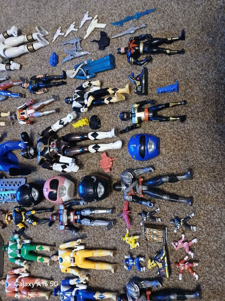 Childhood toys, mostly Power Rangers action figures and accessories. Some complete, some missing pieces.