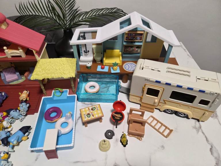 Bluey bundle includes the house, the caravan, the pool house & 2 cars & Bluey figures
