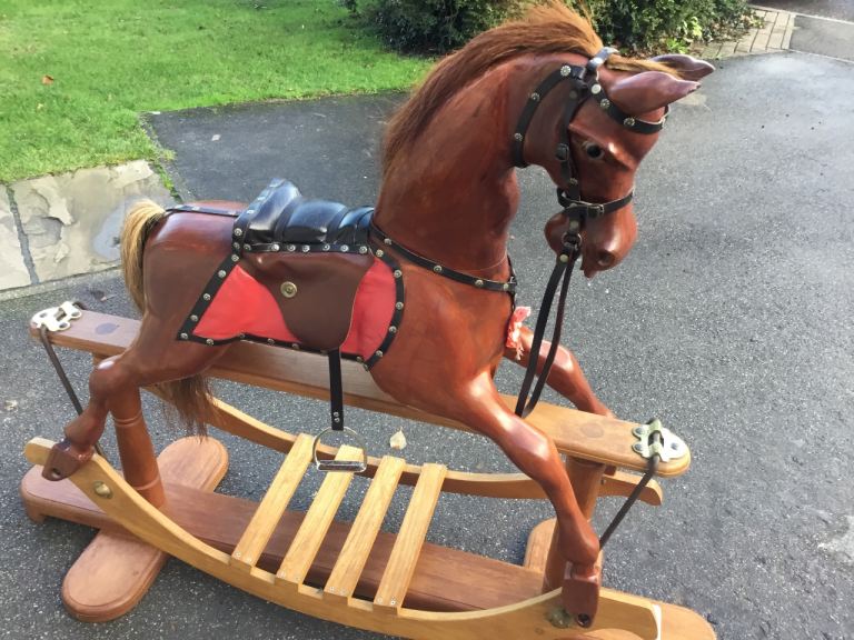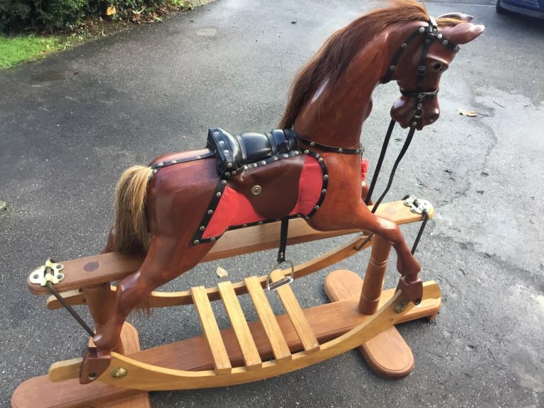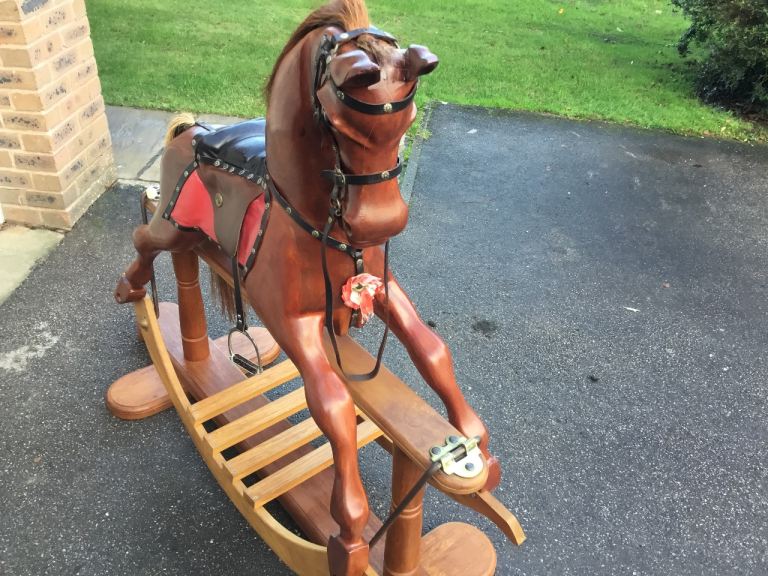 Beautiful Mahogany Rocking Horse ! Handmade by renowned Craftsman “John Rolfe “ of Thornbury in 1990. Superb condition, purchased new for our Son !