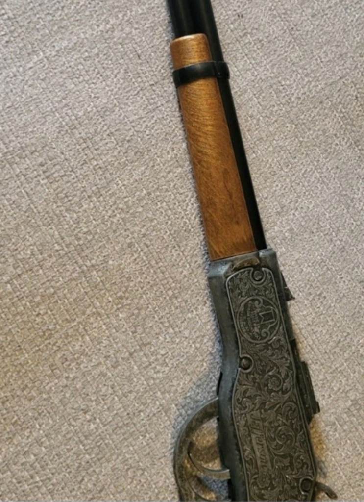 Edison Giocattoli Jefferson Winchester toy rifle with the cartridge that always goes missing and caps in IMMACULATE working condition very rare 1990s Toy will post for costs