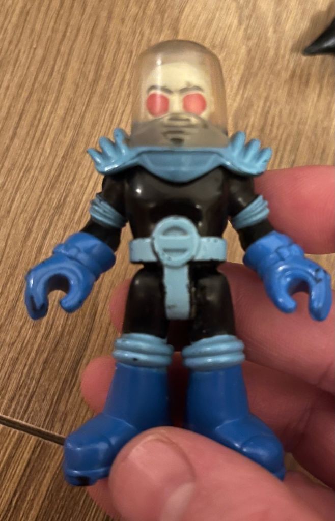 Iceman legs glued on and are now fused, so will definitely not come off and both the Batman cave and bike have small bits broken off, doesn't effect anything and will include pictures.