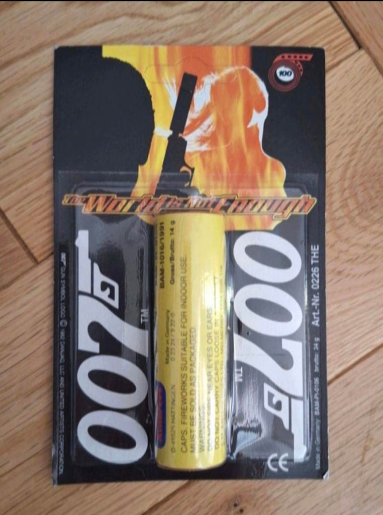 James Bond p99 ppk toy cap gun pistol with 1200 007 the world is not enough wicke paper caps vintage retro 1990s will post for costs or collection very rare