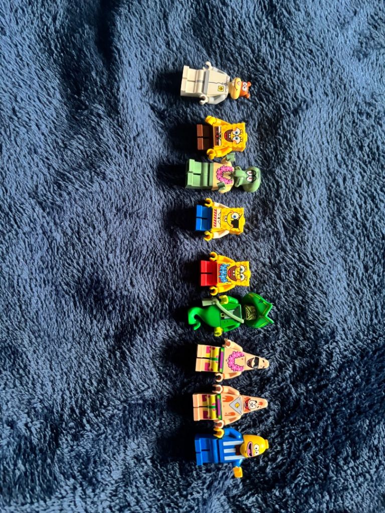 3818- bikini bottom set ( all pieces are in there and all minifigs, i think theres another spongebob set or maybe even 2 that can be built but i cannot work out the set)