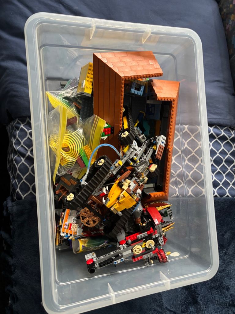 (i have flicked through the boxes and have came across some ninjago figures like kai and cole but someone with more patience needs a good look through for specific parts as they’re all in there to make these sets complete and some maybe even 75% complete, theres even more little sets that i cant find the set numbers for too but all pieces are in the boxes)