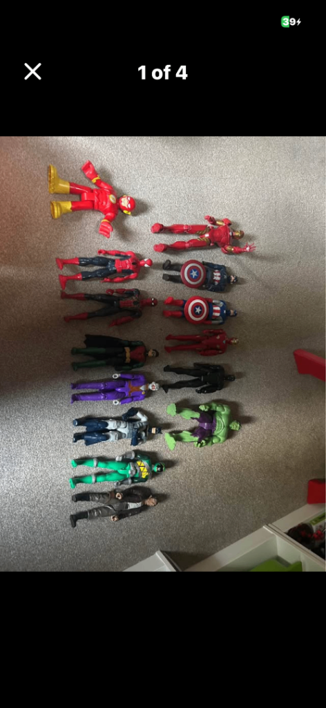 Good selection of used marvel figures great for collectors or personal use about 11 1/2” high £10 each or 5 for £40 also great for stall holders to resale I also have great selection for resale some advertised welcome to view afternoon/evening in mospark no posting no PayPal or transfers got great selection of dc/marvel figures if someone with market stall looking for joblot at good prices