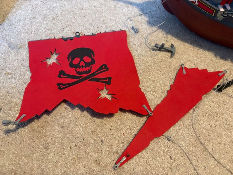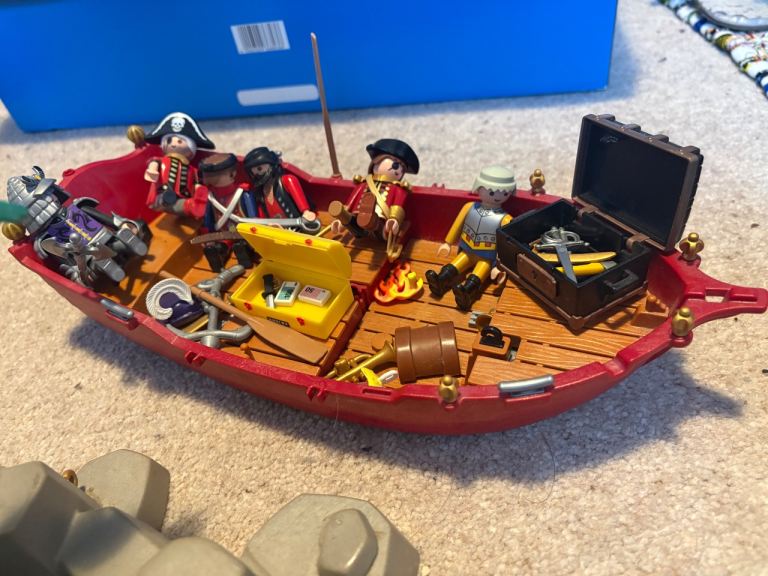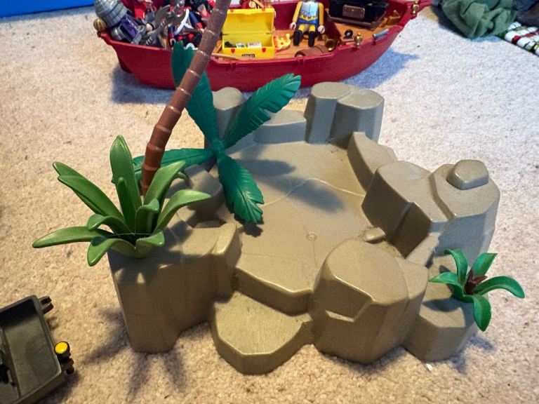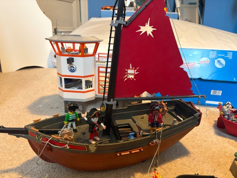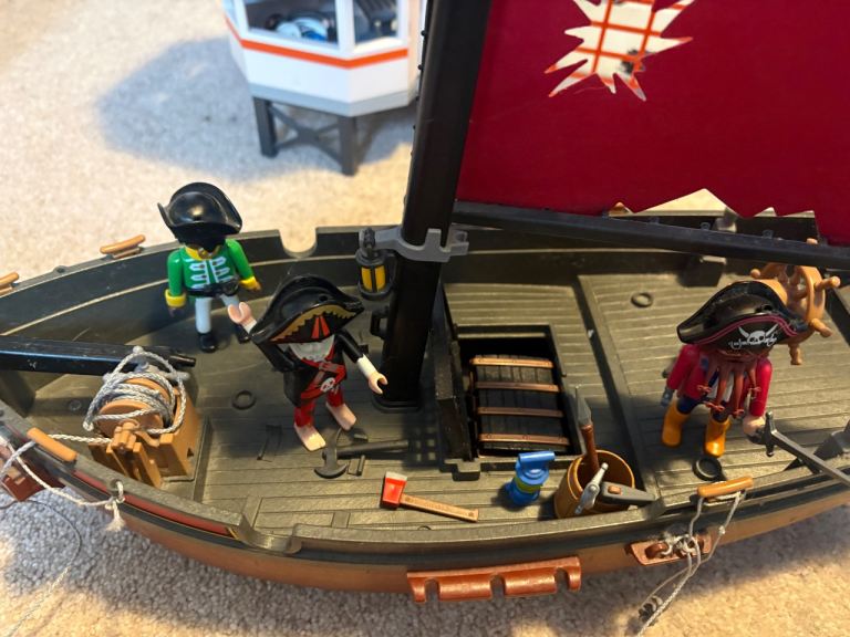 Only damage is a broken mast part on the big pirate ship but the other mast remains and there is still plenty to play with