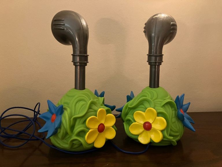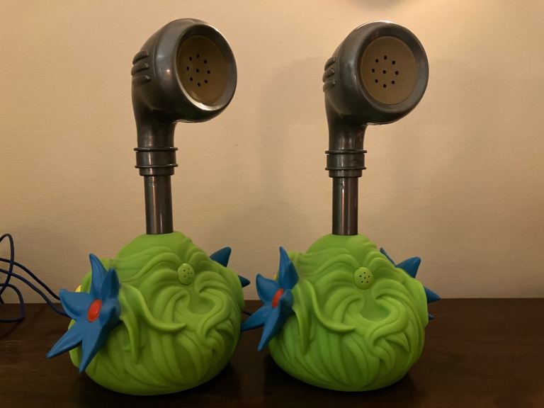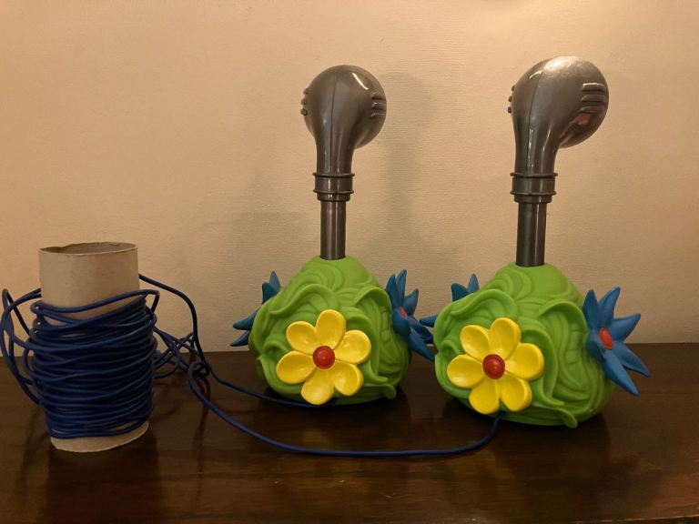 Rare Teletubbies Voice Trumpet toy Collectible. Battery operated. Working, can talk into each and hear in the other! Around 9 metres of cable between so can use between rooms for lots of fun!