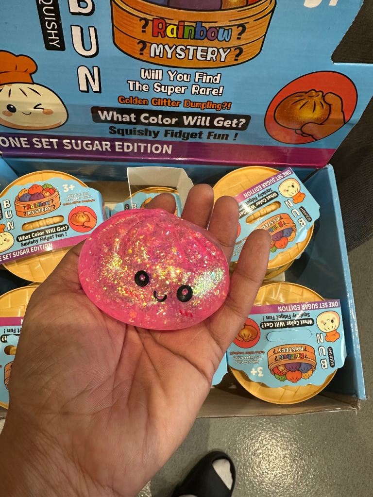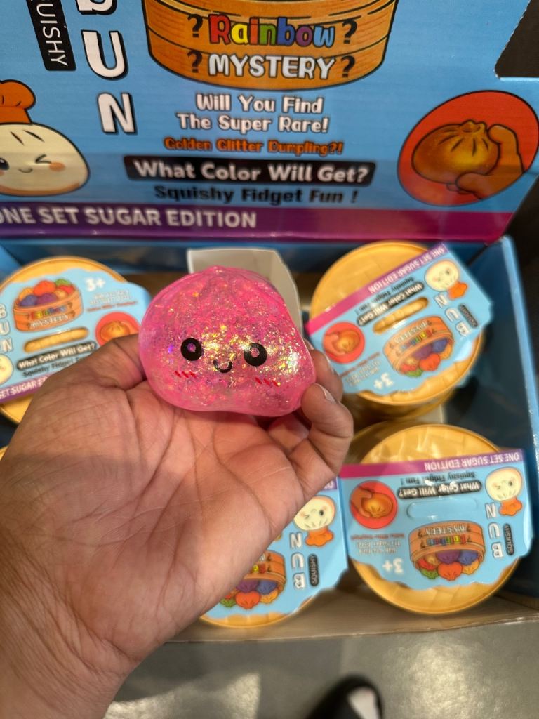 These are mystery fidget toys, with a chance to find the super rare Golden Glitter Dumpling.