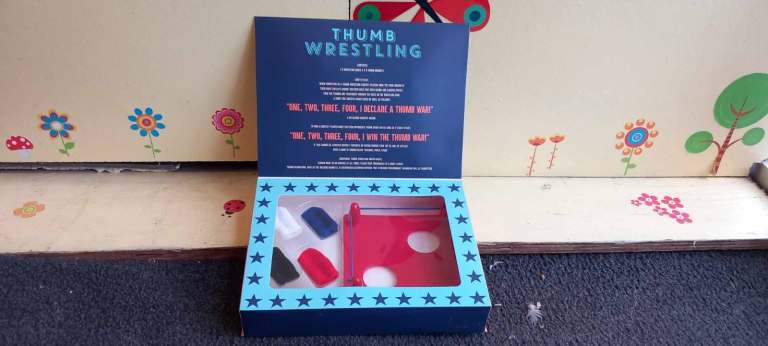 A mini wrestling ring for thumbs