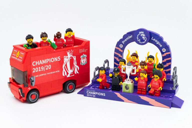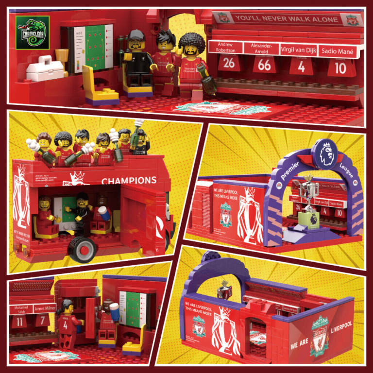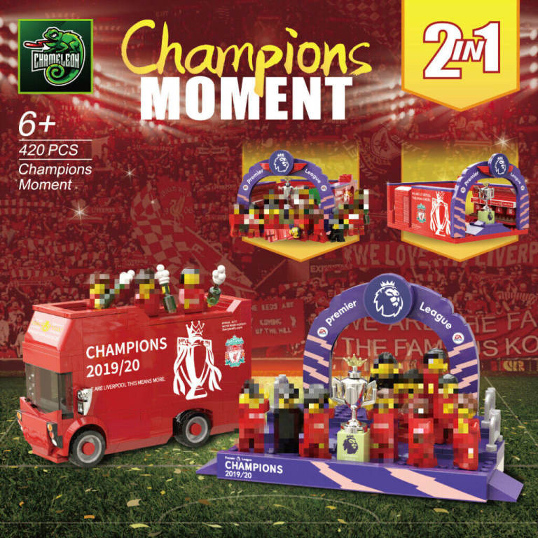 420 piece Champions Moment 2 in 1 liverpool champions 2019/2020 building blocks with mini figures, changing room, trophy and bus.