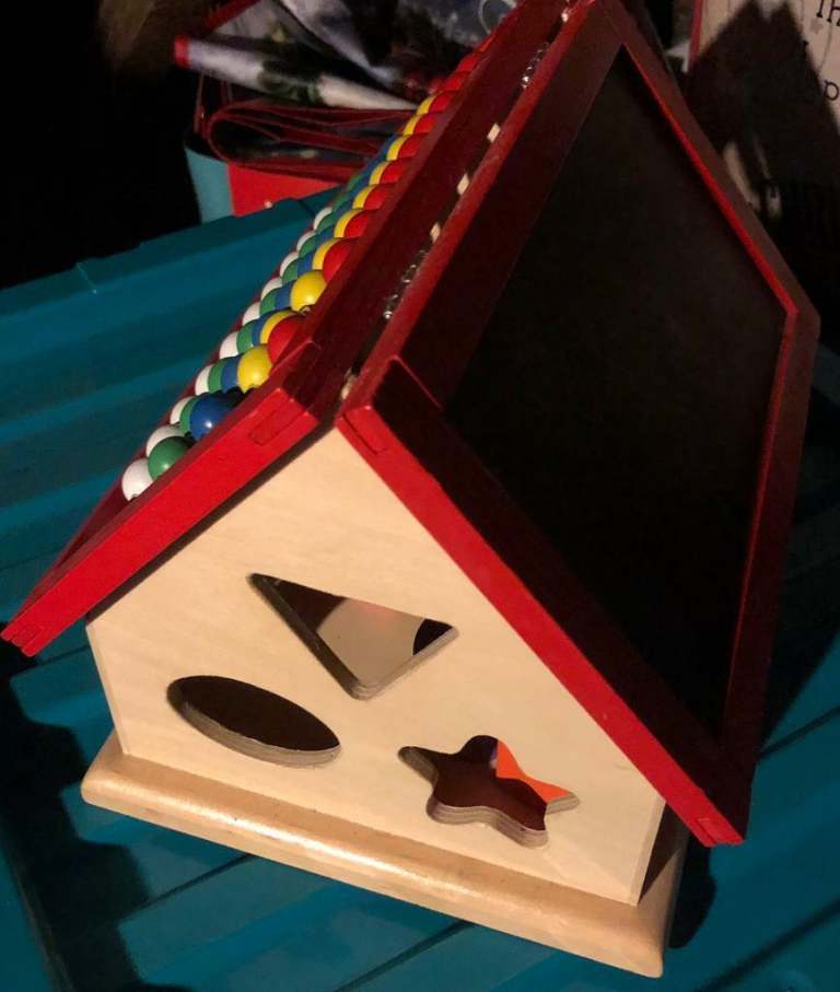 I have for sale a children’s learning house with block, blackboard and beads for count this is in ex condition as hardly used sold as seen