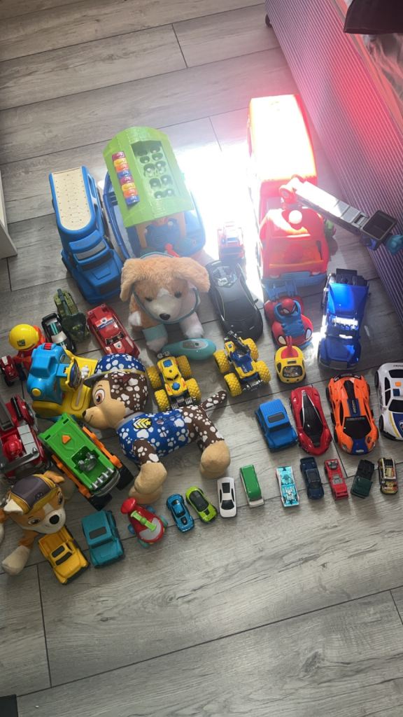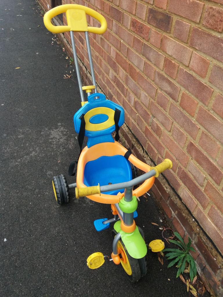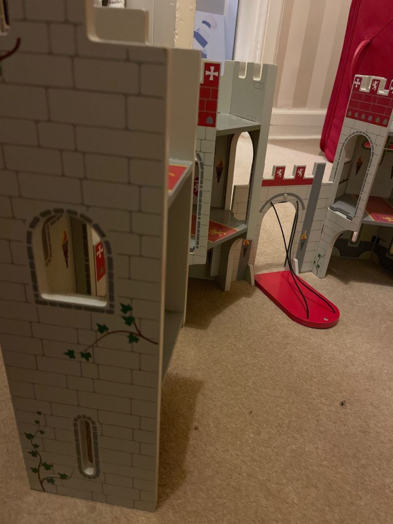 It is in a good condition, the lights work, the ladder extends and the back opens up to store all your little fire fighters favourite things. Your child can walk behind the truck and use the handles on the ladder to turn and steer the front.