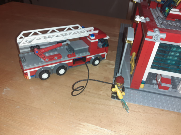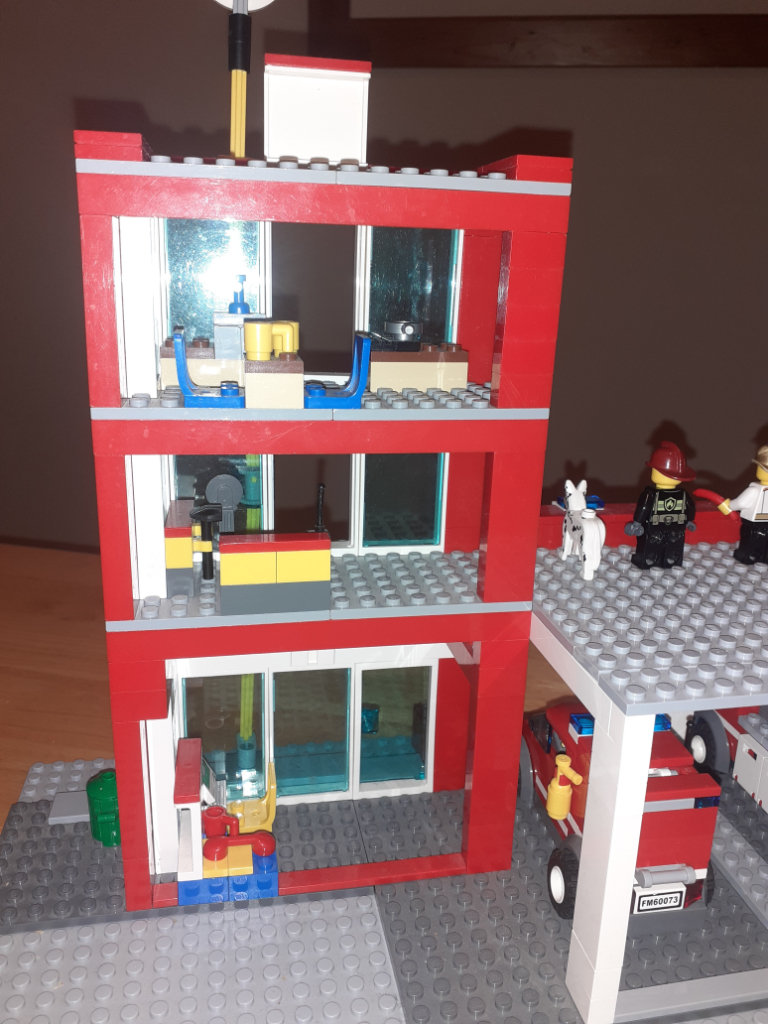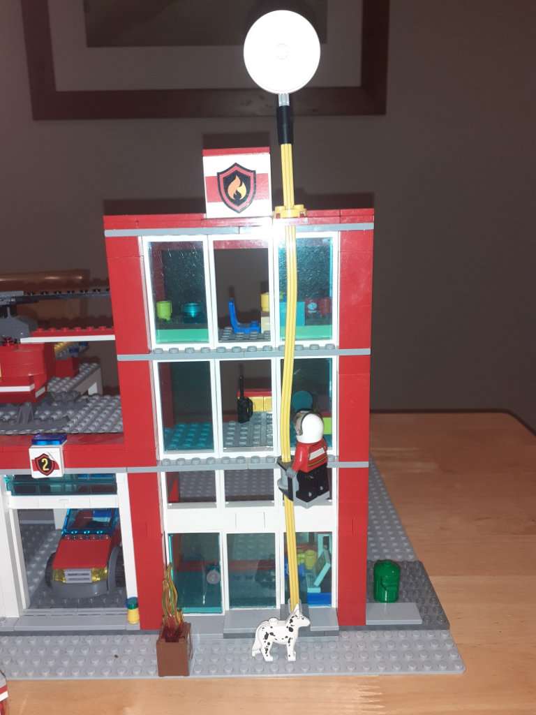 • Slide down the 3-story fire pole with 5 minifigures!