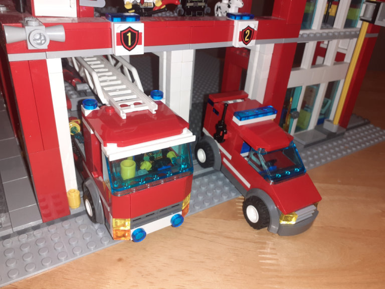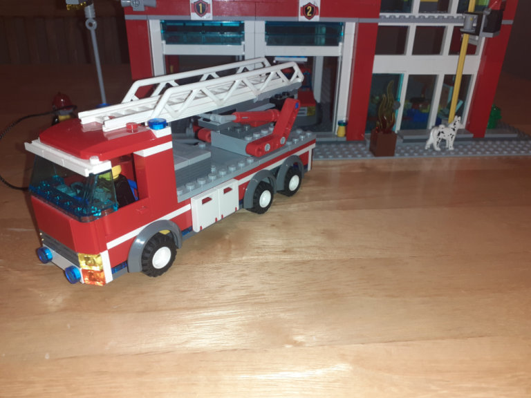 • Open the garage bay doors and drive the fire truck out!