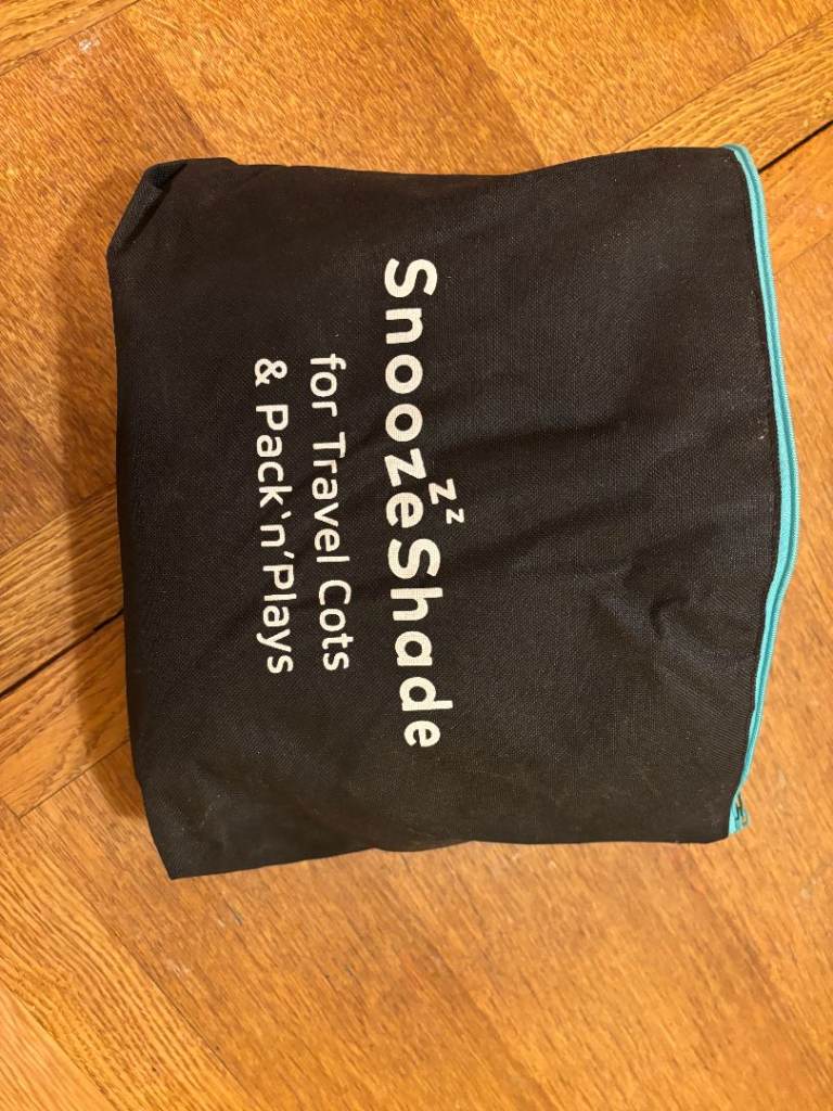 This snooze shade is designed to take with you to drape over your baby/toddler's travel cot, so that they can sleep anywhere even if it's bright daylight. It's very thin and airy. We used it a lot travelling in France, and also on the ferry when we needed to put the light on but not wake up our baby.
