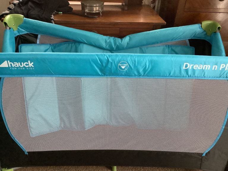 Posting for 2+ yearsTravel cot with mattress and bedding