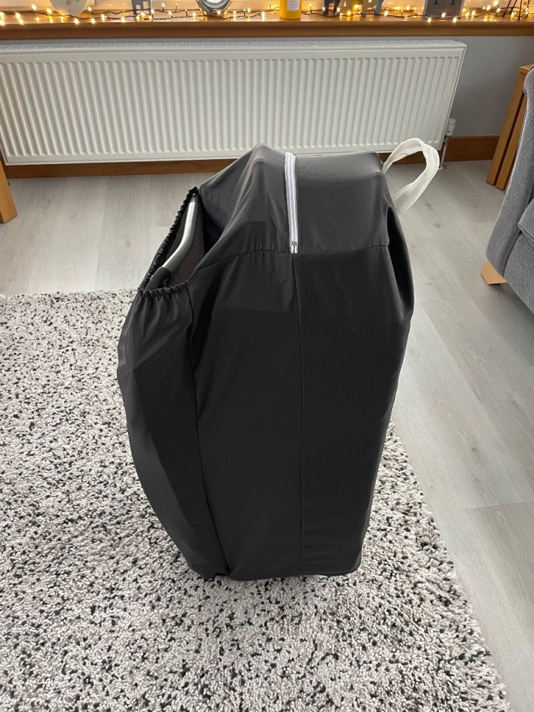 Size when in use 72cm x 103 cm Height 82 cm.Ideal for use for travel or at home as a full size cot.