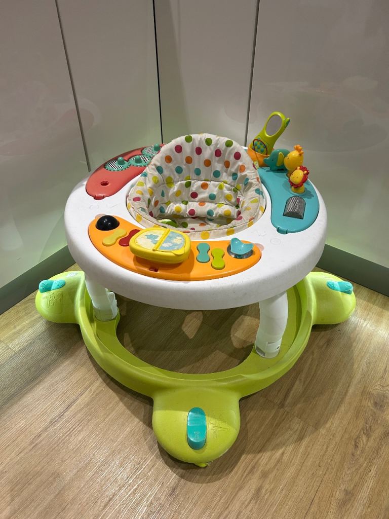The Mothercare baby walker with a 360 degree removable seat is designed for young infants to help them learn to walk. Made by the reputable brand Mothercare in the United Kingdom, this walker features a safari theme, making it engaging and fun for babies. The removable seat allows for easy cleaning and transition as babies grow and develop their walking skills. This product provides a safe and supportive environment for babies to explore and take their first steps confidently.