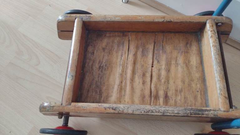 The base board has some cracks but can hold the blocks in place without any problems. The wheels run fine.