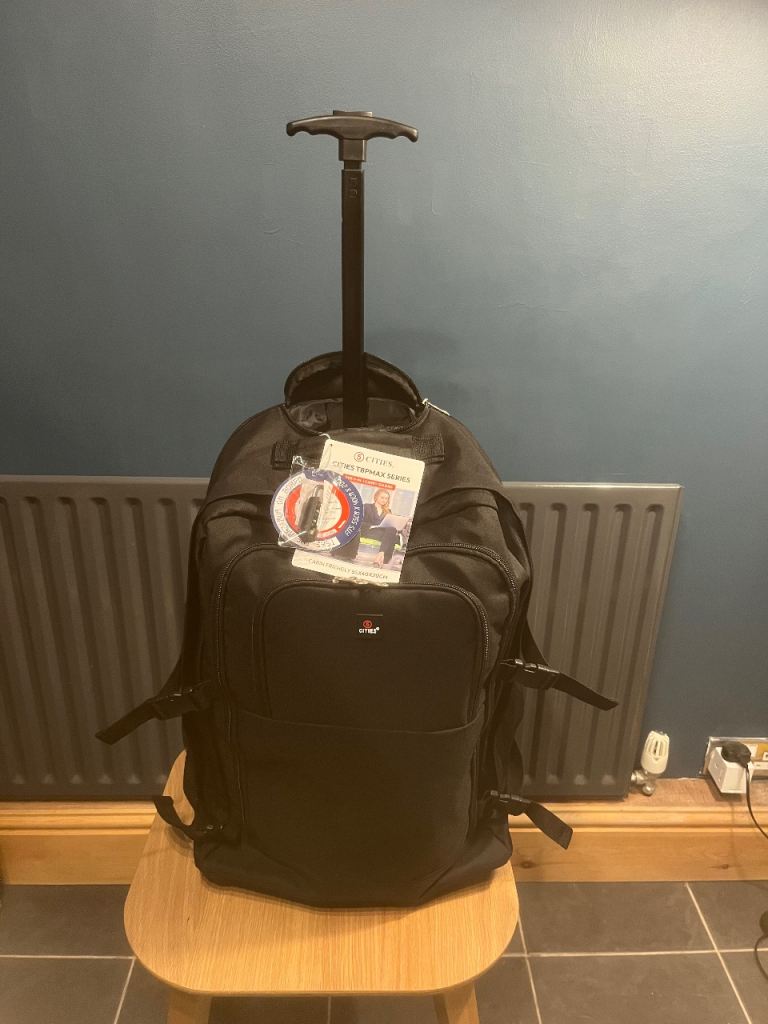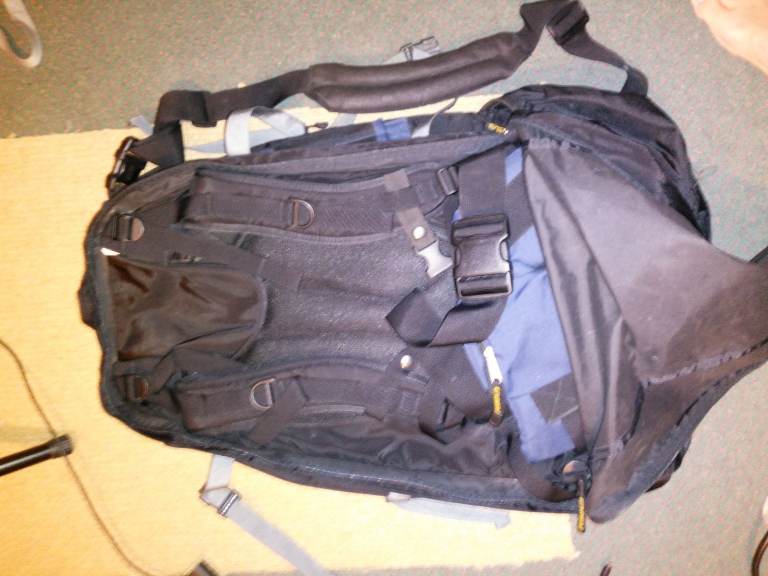 Asolo travel backpack with cover. The cover is useful during flights, to keep all the straps inside. It was used briefly with another cover during trip so is in excellent mint condition. Asolo is an excellent travel brand.