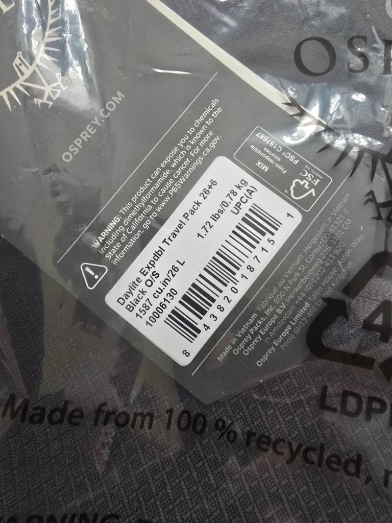 Osprey Daylite Expandable Travel backpack 26 +6 Black NEW SEALED luggage flight