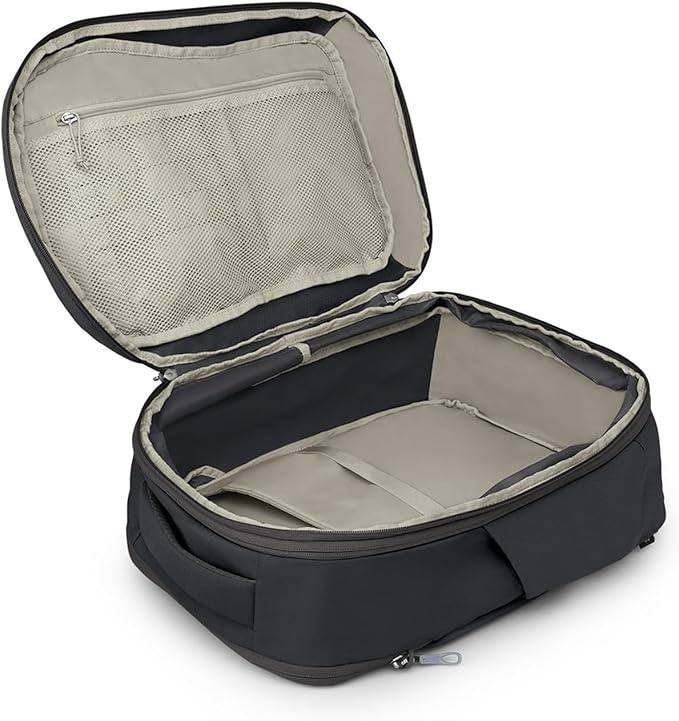 Suitcase-style, full zip opening with mesh divider