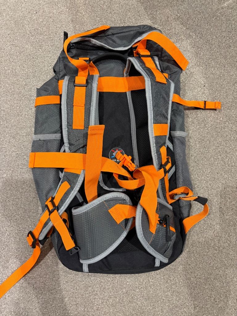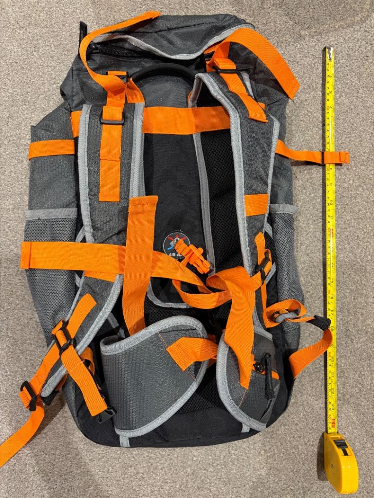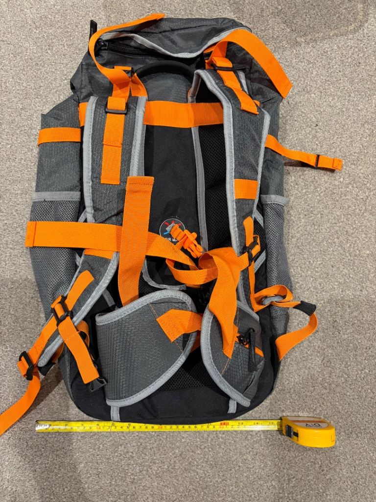 Grey & orange approx 50L Rucksack, 60cm tall in good condition. Brand unknown. Strong & sturdy Rucksack. Ideal for camping or hiking.