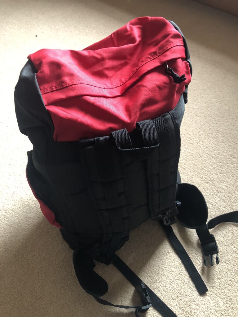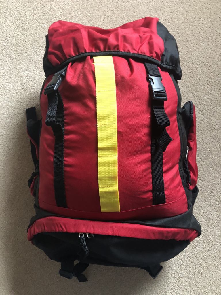 New and unused red rucksack. With a 60-litre capacity and sturdy structure, you can carry all your essentials and more without fear of it tearing.