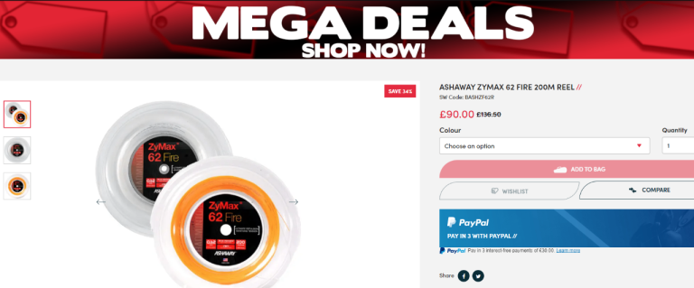 New Ashaway ZyMax Fire 62 badminton string (remaining of 200m reel)