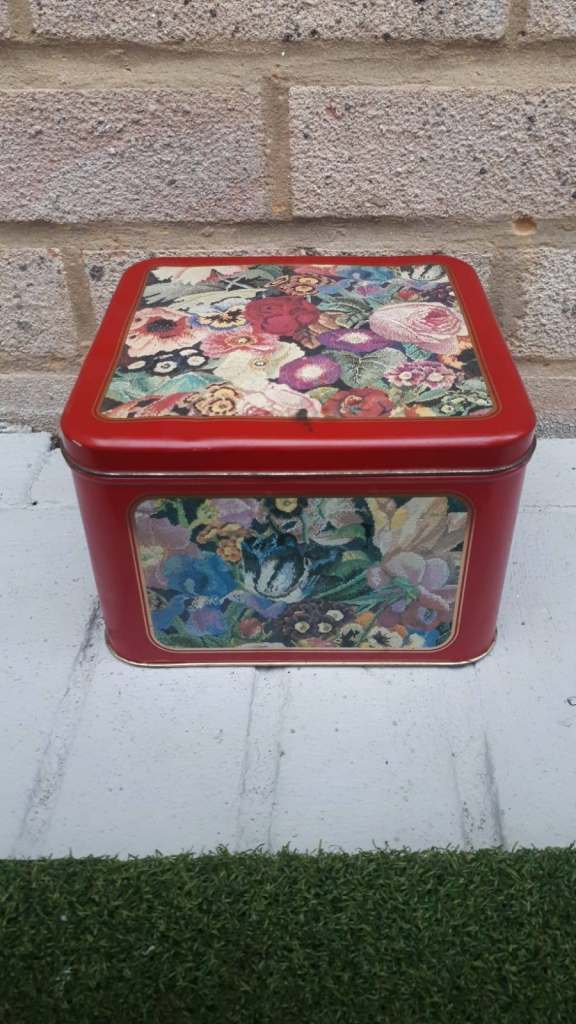 Large Clean Biscuit Tin Old Collectable St Michaels Cakes Can Roses Flowers