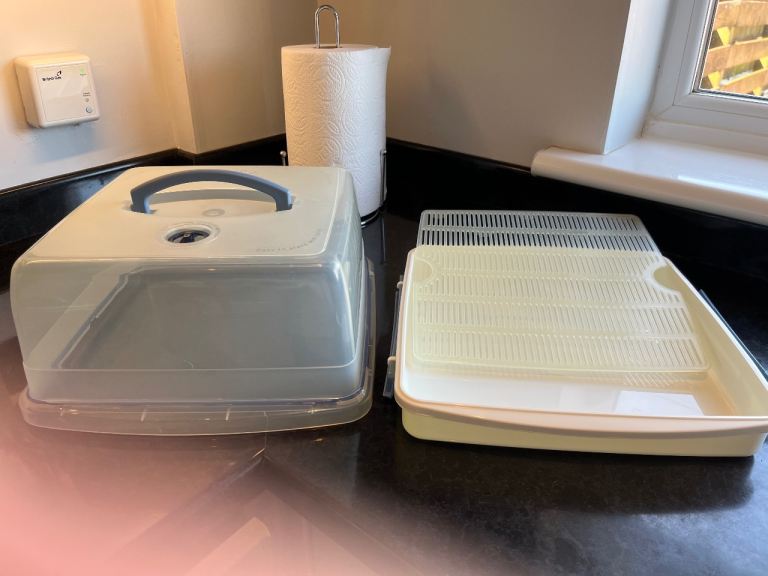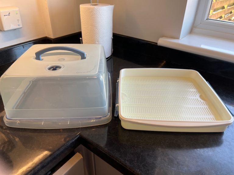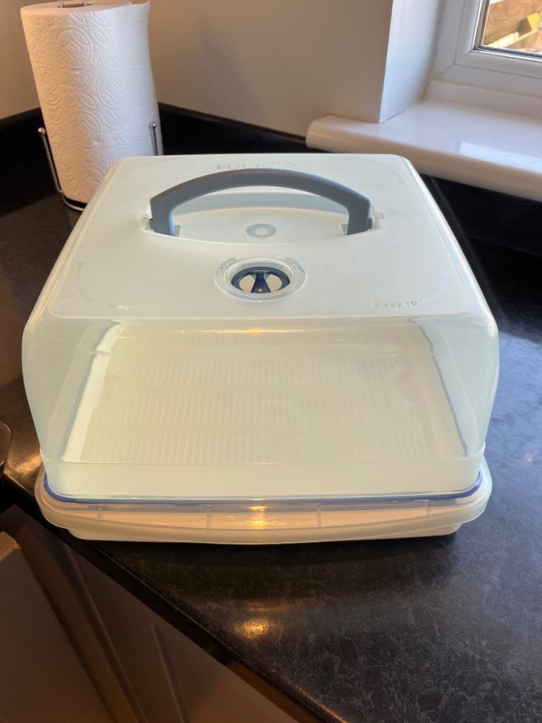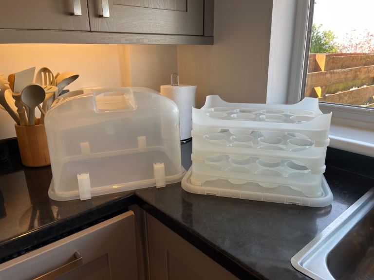 Lakeland 3-tier cupcake carrier for 36 cupcakes + Lock & Lock cake carrier for larger cakes with handle and indicator for storage date + 1 carrier for biscuits etc. All in very good condition and come from a smoke free home. Buyer to collect.