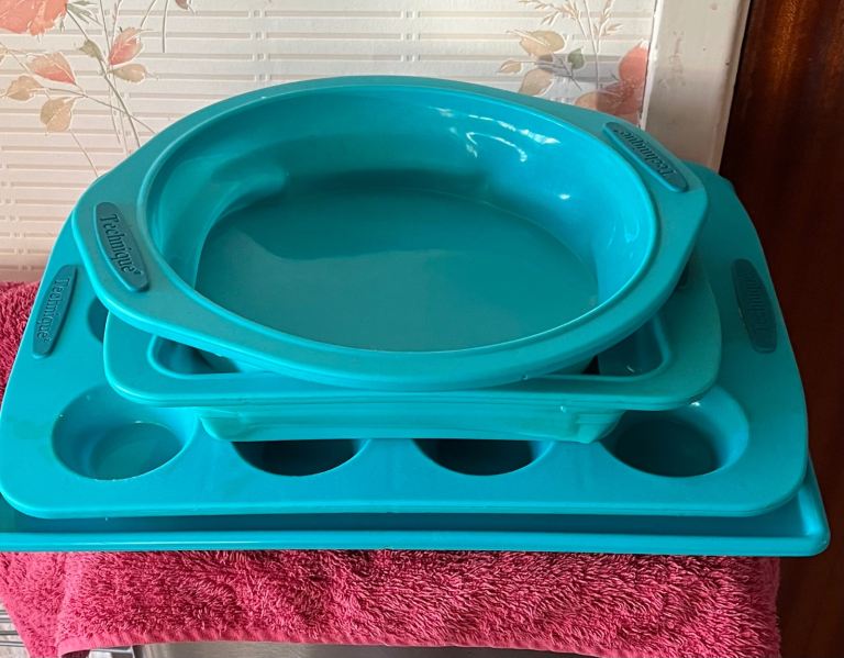 4 PCE SILICONE BAKEWARE SET WITH CARRY CASE - TEAL BY TECHNIQUE