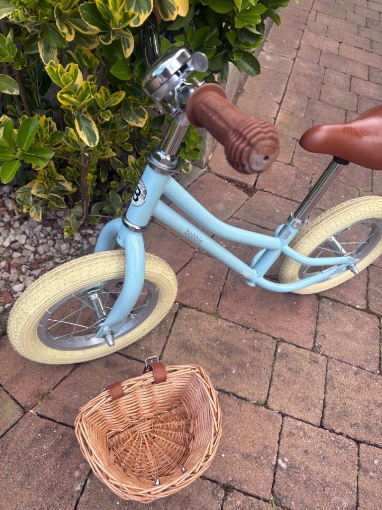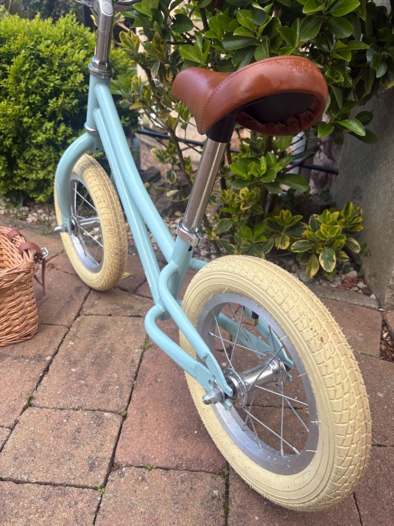 Posting for 9+ yearsBobbin Gingersnap Unisex kids balance bike duck egg bicycle