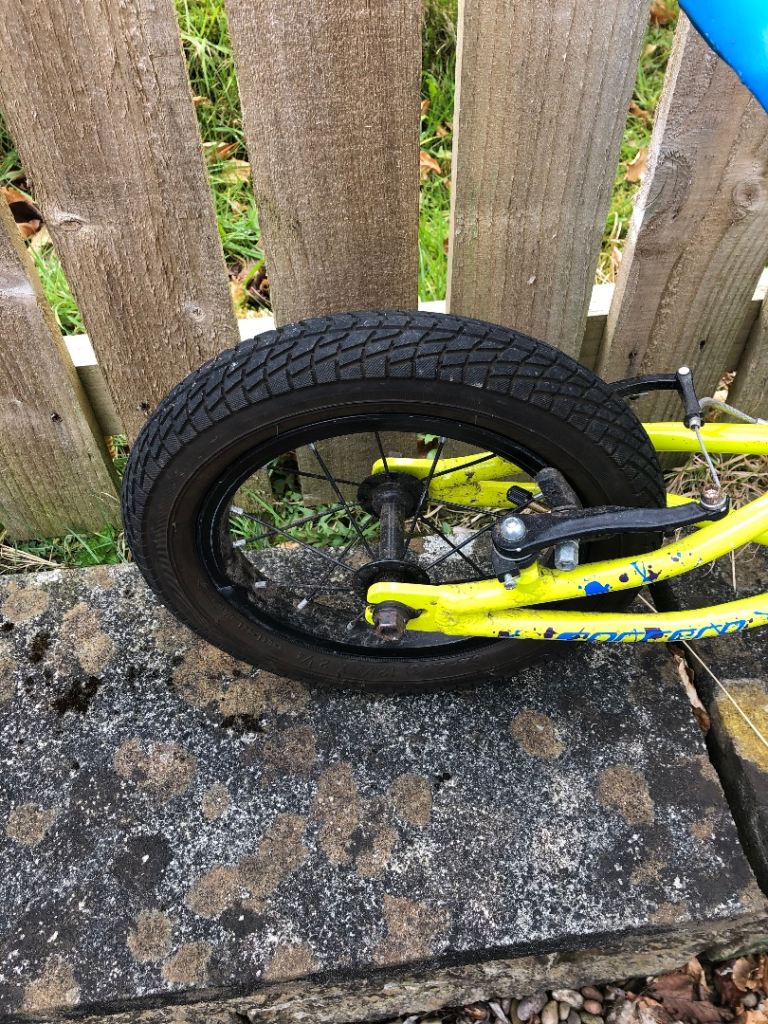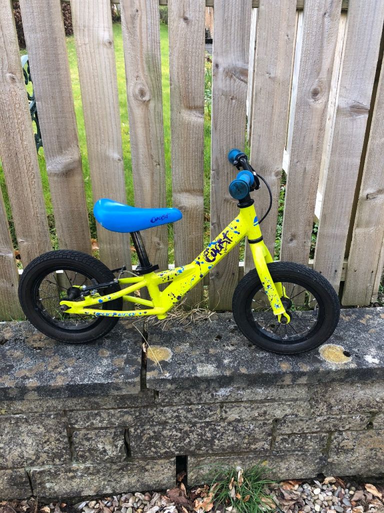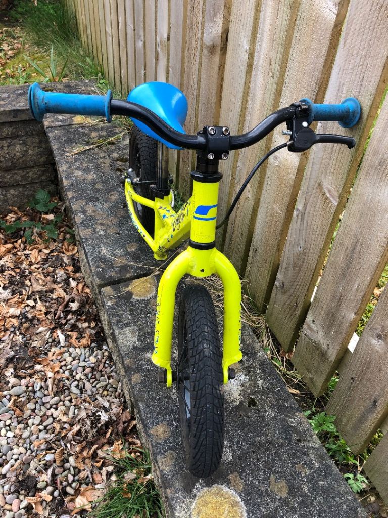 Kids 12” balance bike nice yellow and blue design great for kids learning to cycle