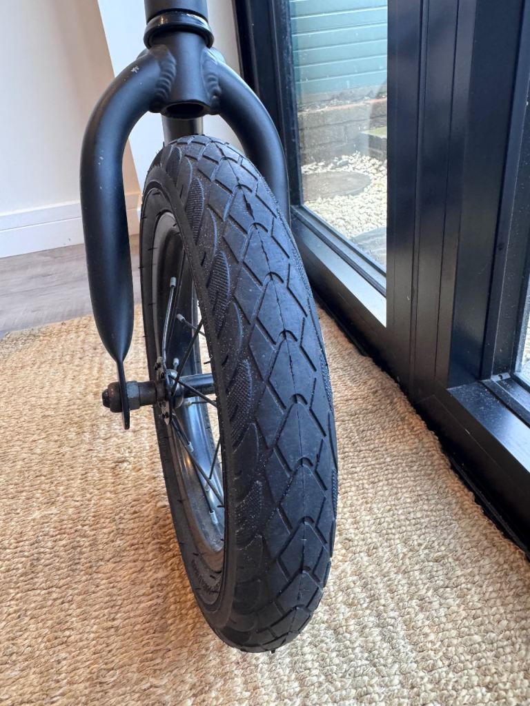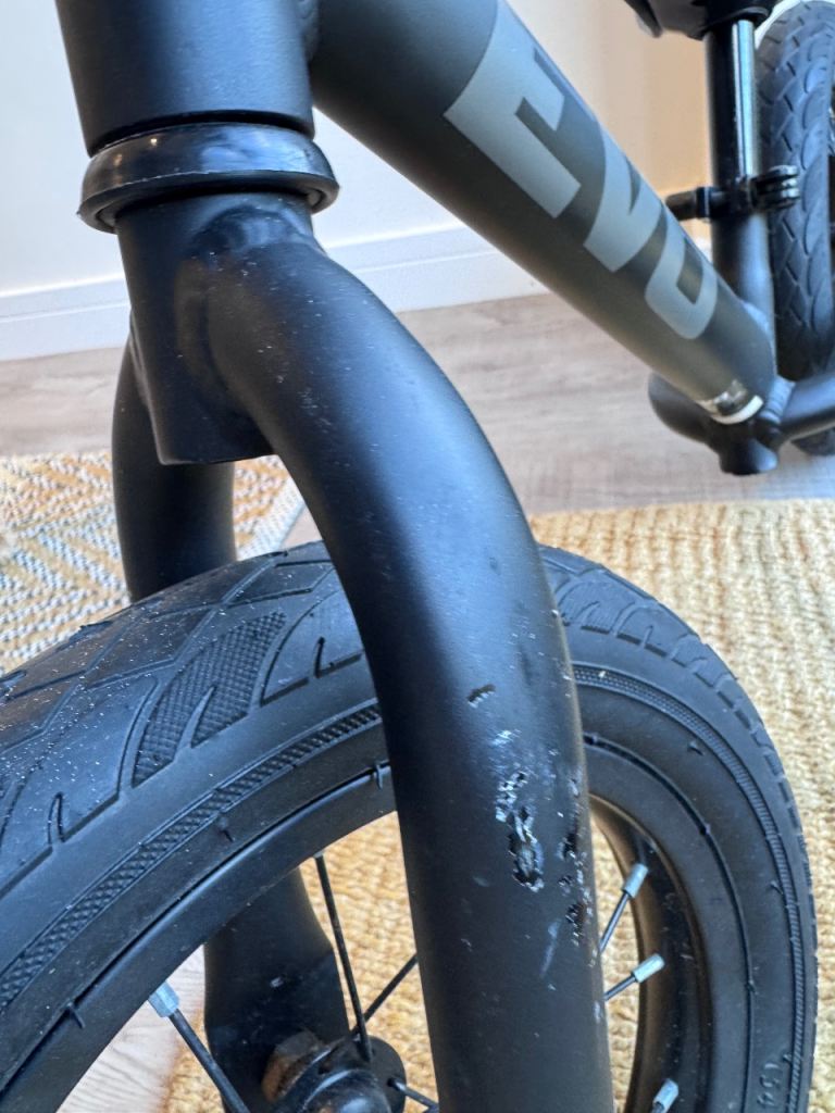 Really brilliant balance bike, barely used as we bought it too late for our child. Tyres and everything are in great condition. A couple of marks just from packing tape when we moved house.