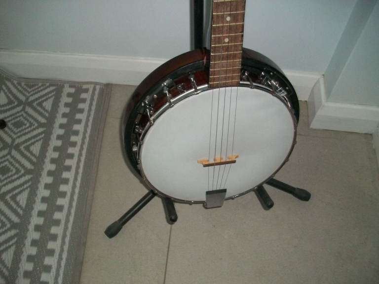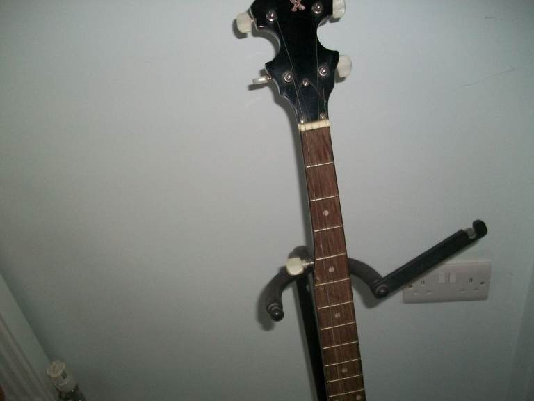 nice olde 5 string banjo. good action, plays very well. no bad dings or dents, odd very small mark here and there, nothing really but must be pointed out, would prefer pick up from leicester, but could post uk mainland only. (£8) priced to sell so no messers please