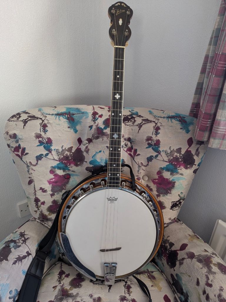 dads old windsor 5 string banjo, and useable case, streight neck, low action, no bad dinks or dents, over 100 years old (so i am told)so sold as per picks no return. sounds great, might need new strijngs (dont really know) pick up from leicester, or i could post, uk mainland only