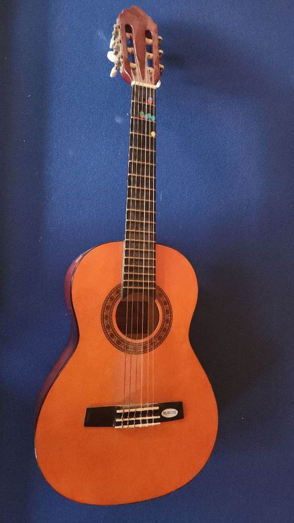 It has a mahogany and aluminium body, mahogany neck and rosewood fingerboard. It plays well and has a clear, resonant sound with a nice tone.