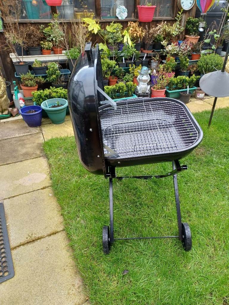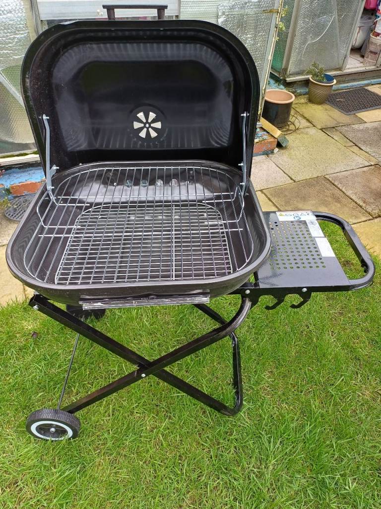 Folding barbecue with shelf.