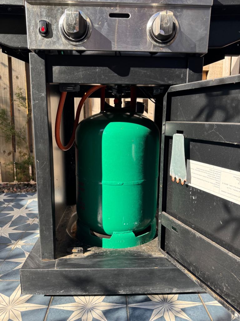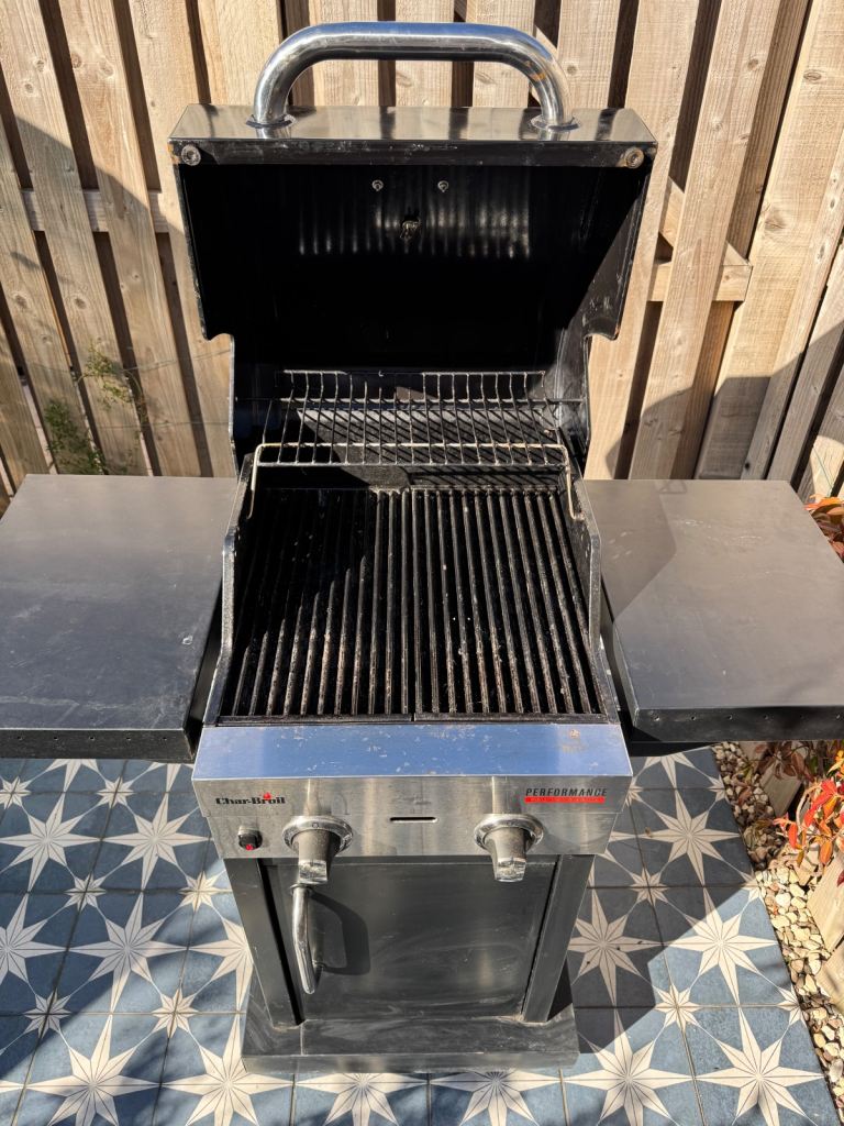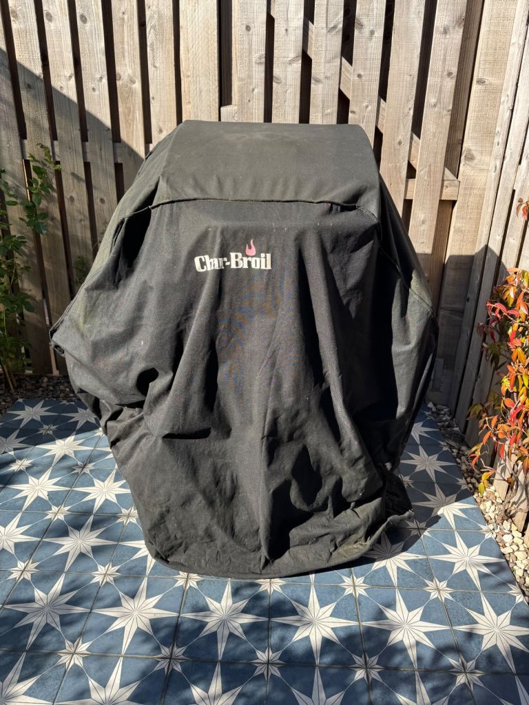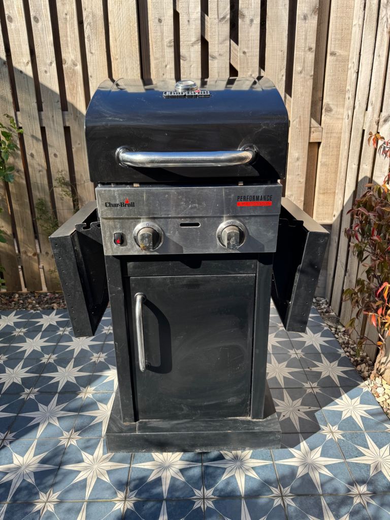 Charbroil gas barbecue (bought for £400) Cover (bought for £40) and full tank of patio gas (bought for £80). Used on only 4 occasions. Stored outdoors, but always undercover.
