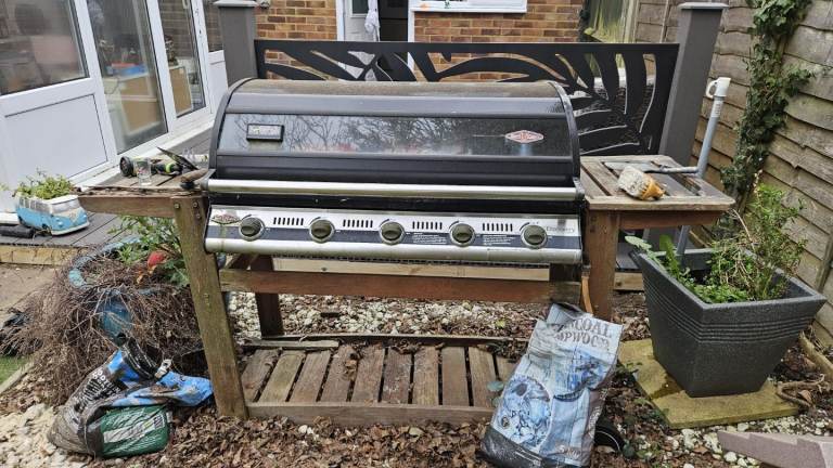 Used and slightly rusty large bbq with gas canister. Still plenty of use left in it just needs a scrub
