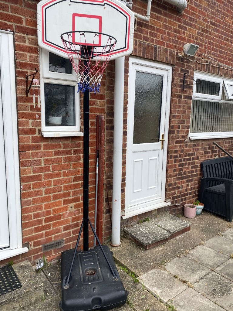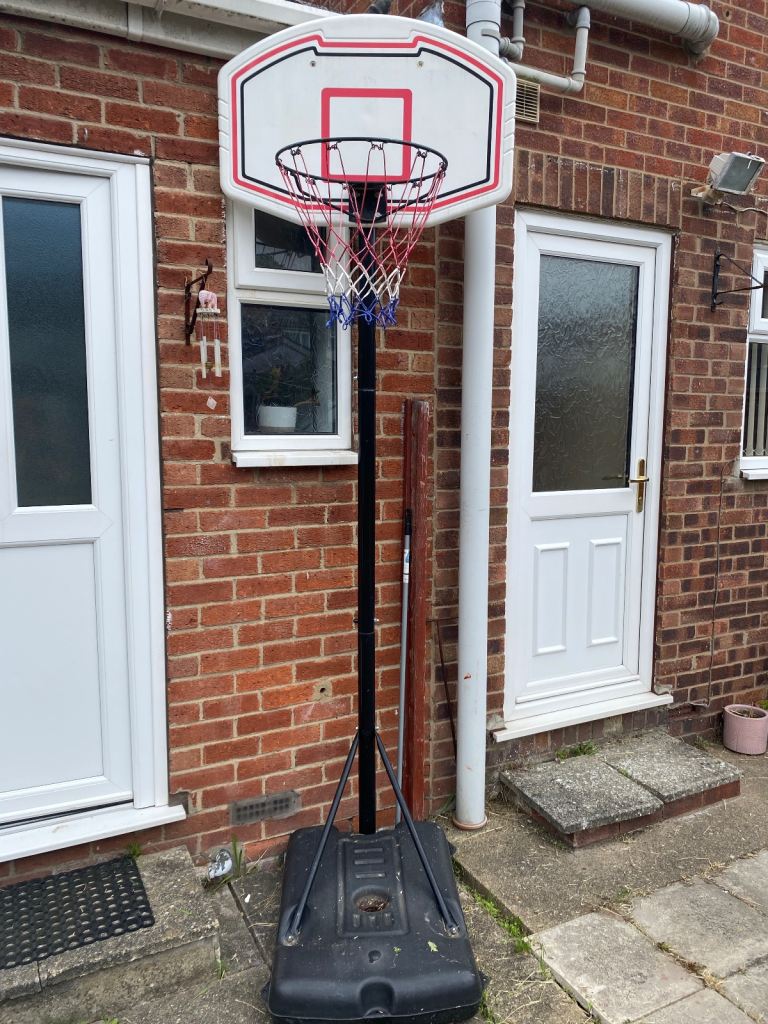 For sale basketball hoop with back board and stand in really good condition selling due to moving house sold as seen the bolt unscrews so the top half comes down, the rest can be unscrewed if need to fit in the car