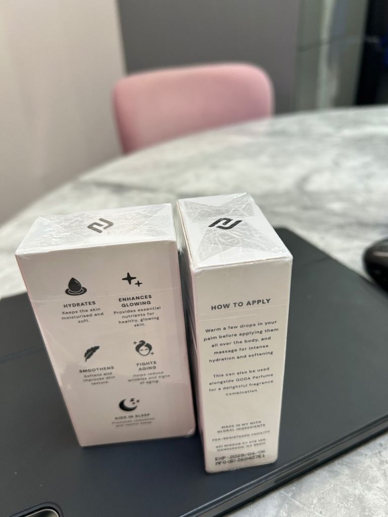 2x 50ml bottles of Goda Body Oil unopened as seen for sale on Instagram