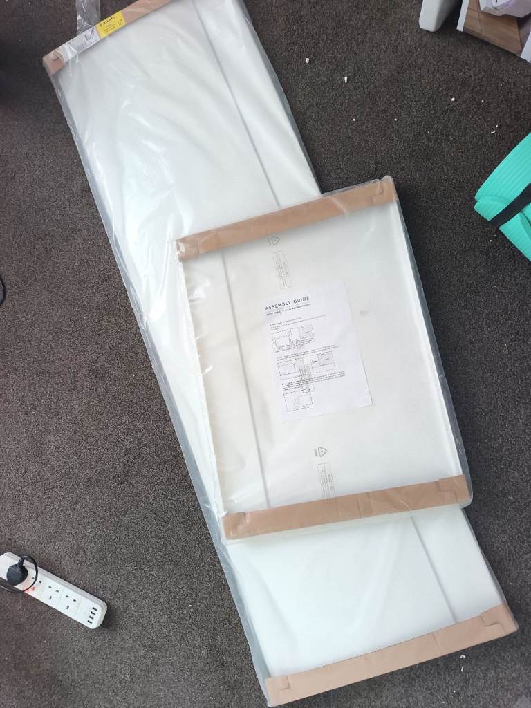 Brand new BATHMPIRE HBB900 bi-fold shower door, still in its original packaging.